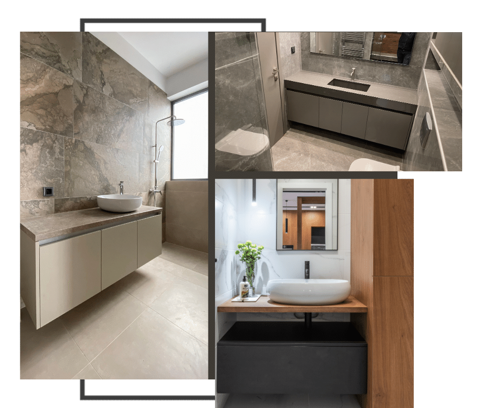 Παράλληλα με το σχεδιασμό, την κατασκευή και την τοποθέτηση επίπλων κουζίνας, η εταιρεία μας αναλαμβάνει και την κατασκευή επίπλων μπάνιου, δίνοντας ιδιαίτερη έμφαση στη λεπτομέρεια και την υψηλή αντοχή.